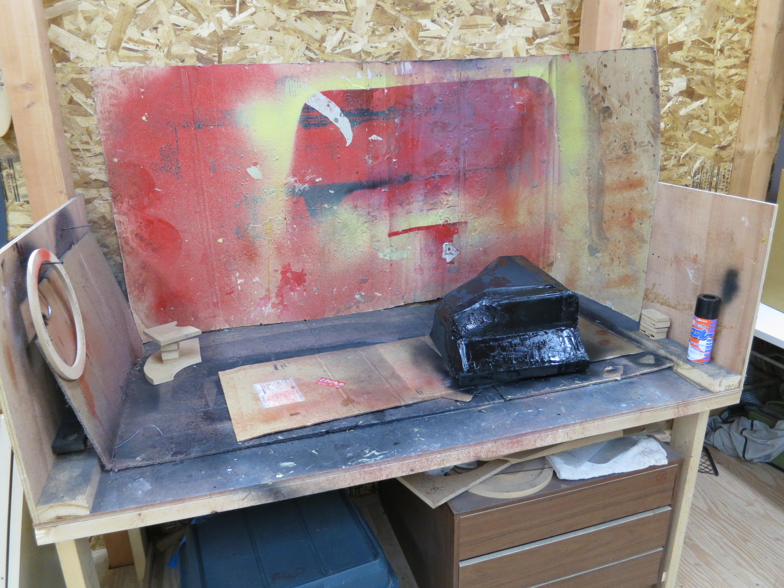 ペイントブース?(というほどの物ではないが(汗))防水処理の塗料を塗ったり,ボンドをふいたりするところ。
