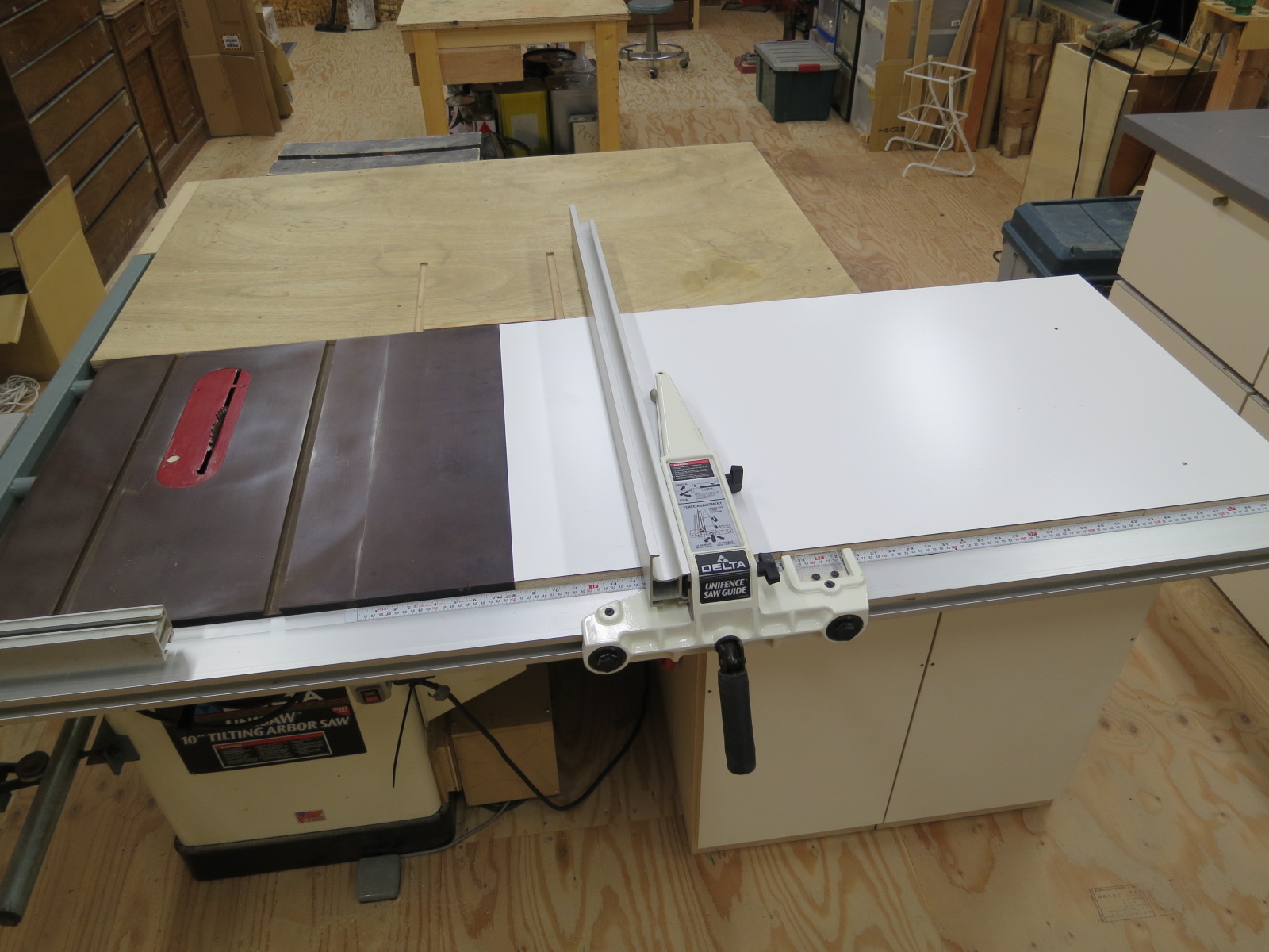 そしてこちらが今回苦労して導入した,DELTAのUNISAW。デルタのユニソー。キャビネットソーです。