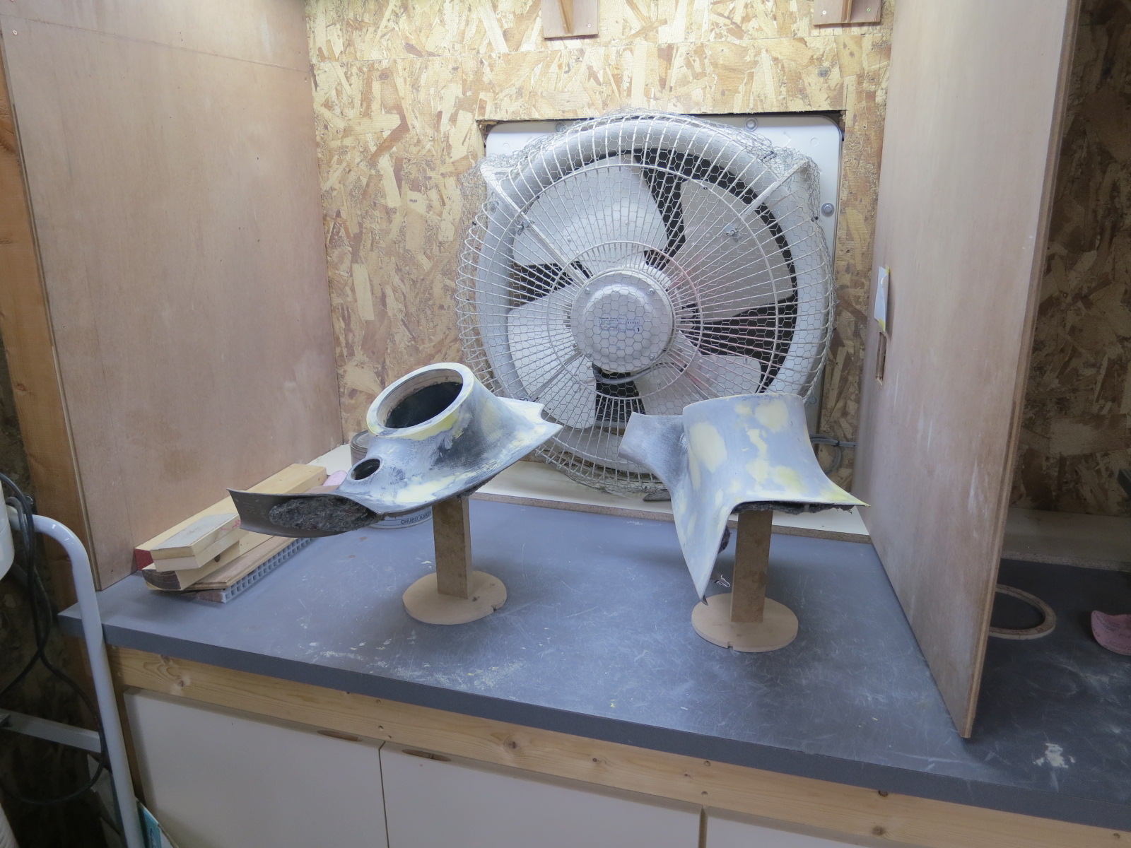 直径60センチの巨大有圧扇。サンディングの際の粉塵も排出してくれますし,部屋全体に充満したトルエンやアセトンなどの有害ガスなども強力に排出してくれます。