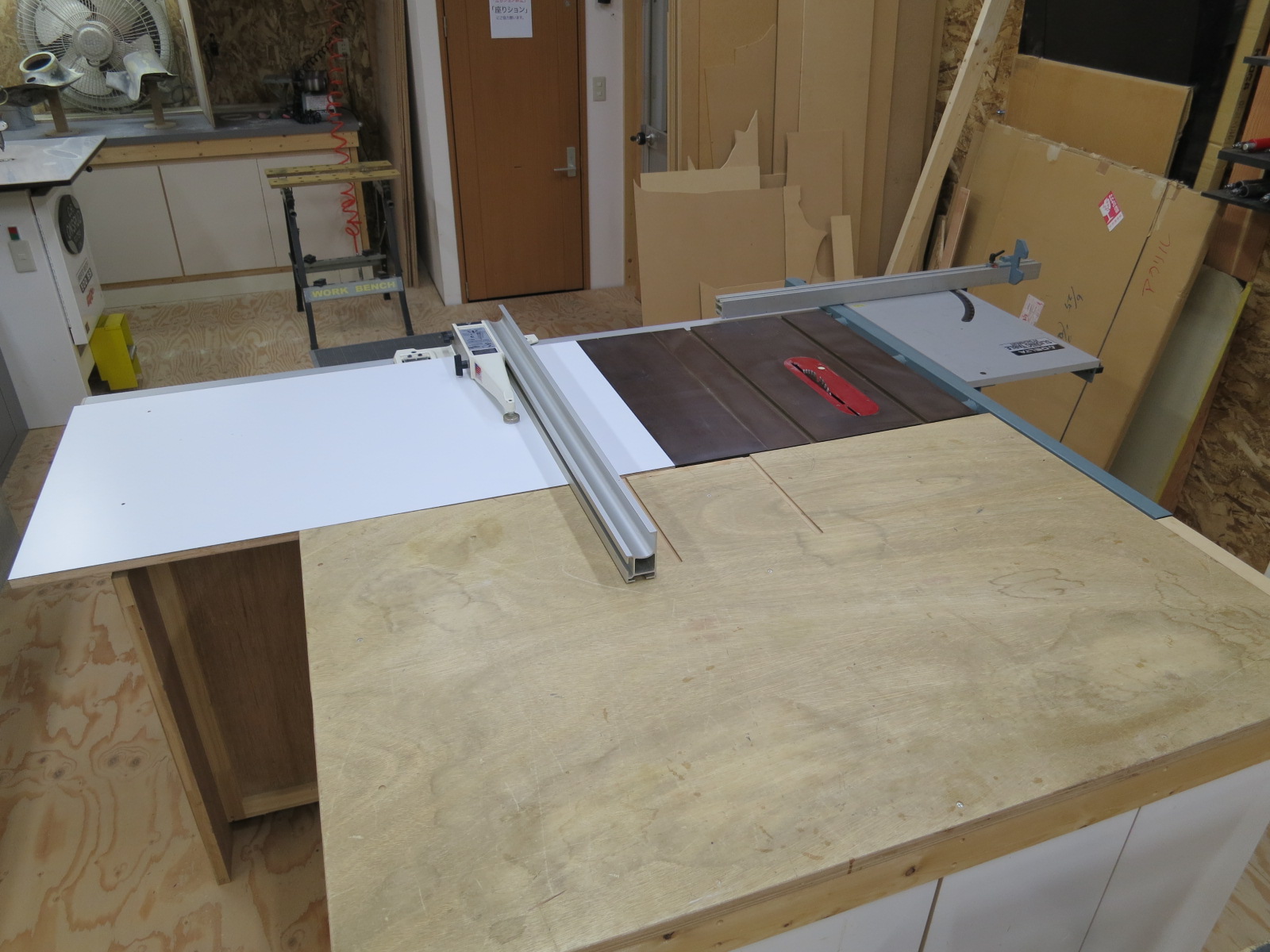 このスライディングテーブルと,50インチのユニフェンスを両方使用する為にちょっと工夫が必要で,組み立てに時間がかかってしまいました。