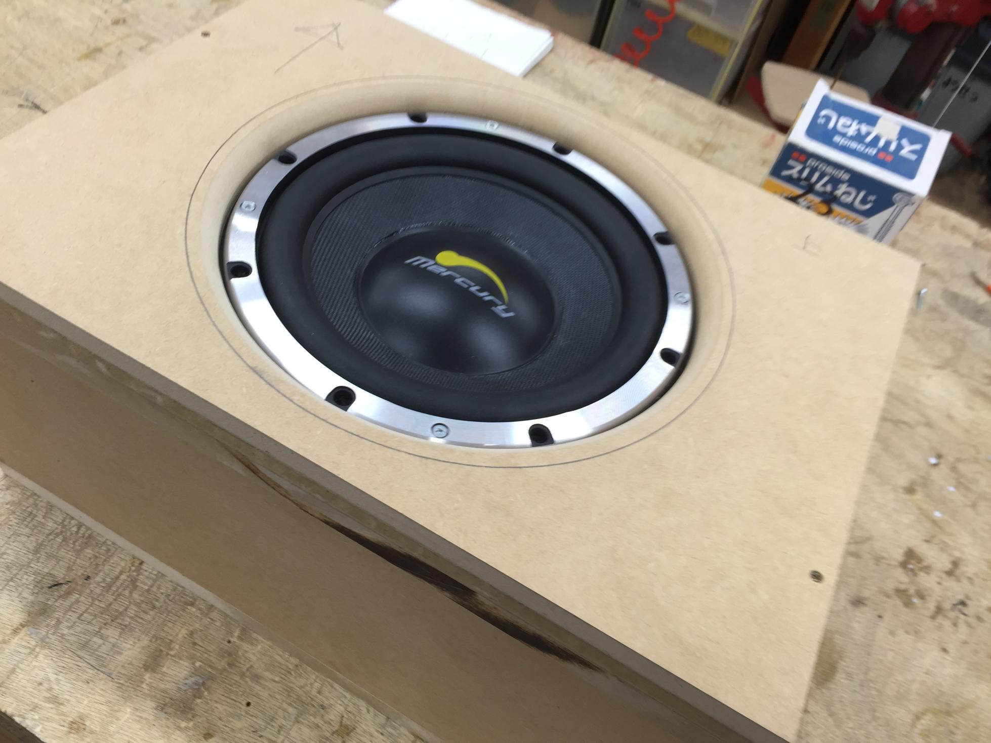 18ミリ厚と21ミリ厚のMDFを組み合わせて、推奨容量十分なウーハーボックスには補強を入れて、ディープな重低音とスピード感のあるベースサウンドを目指します。