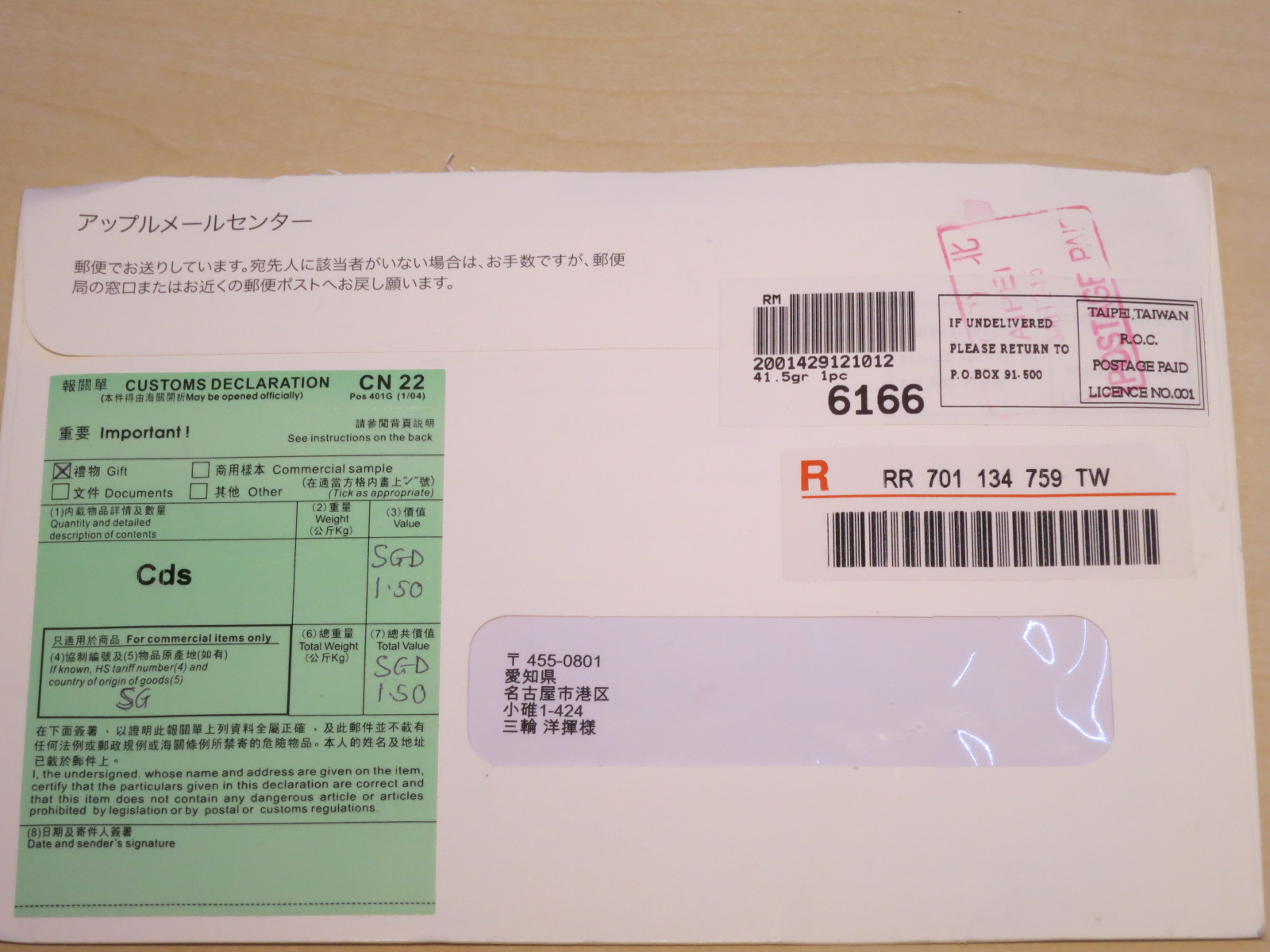 本当にアメリカから送ってきたようです。