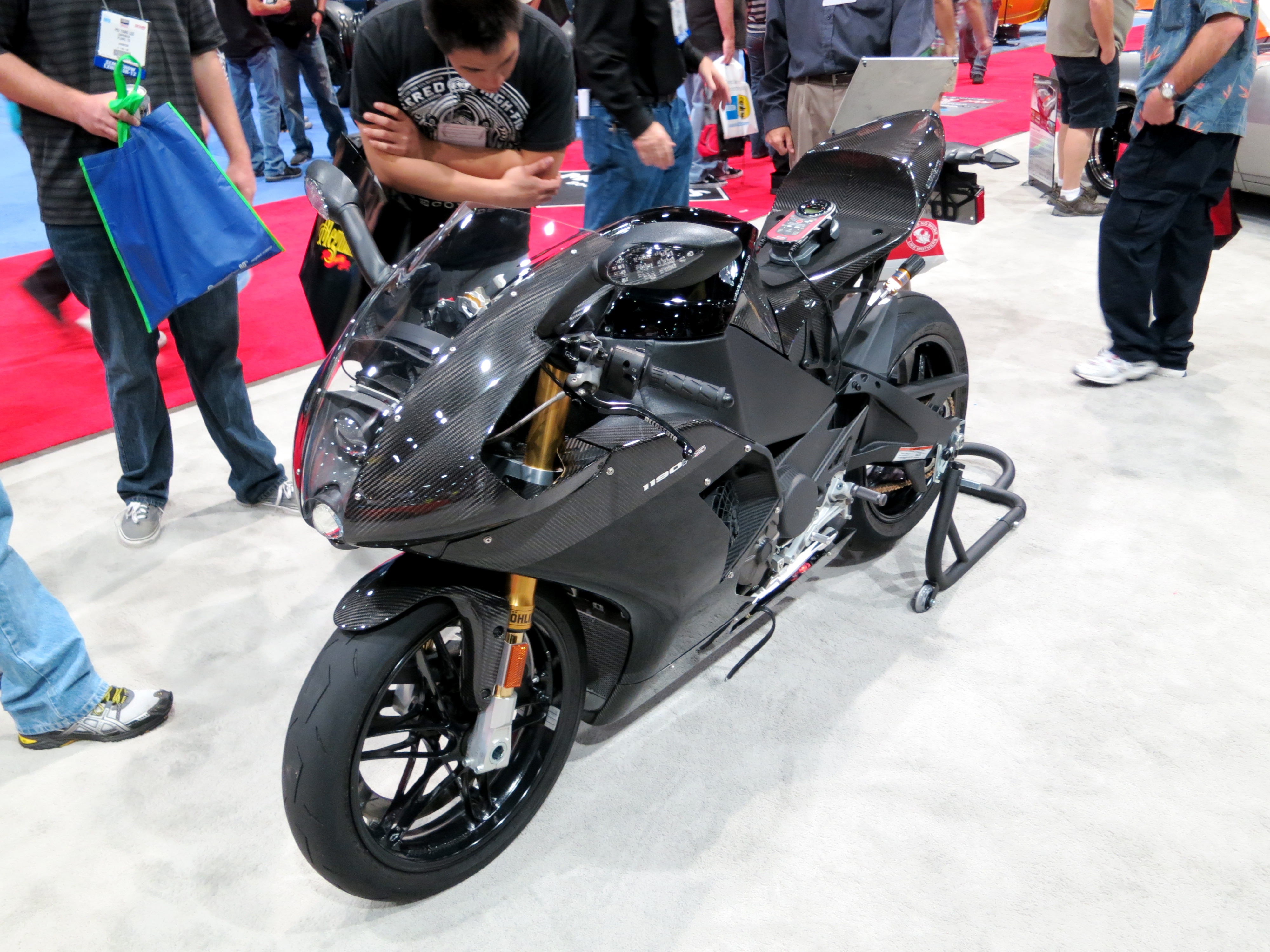 会場を歩いていたら,「なんかカッコいいバイクがあるぞ。新型のビモータか?」