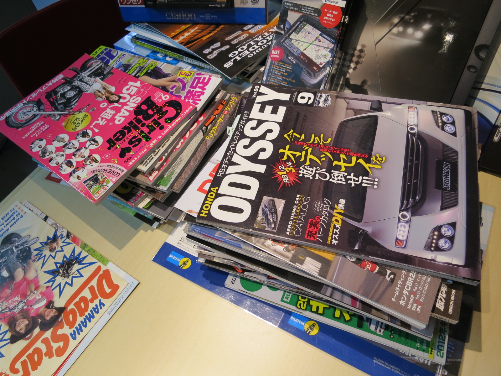 日本のクルマやバイクの雑誌も、お店に大量に余っております。(^_^;)