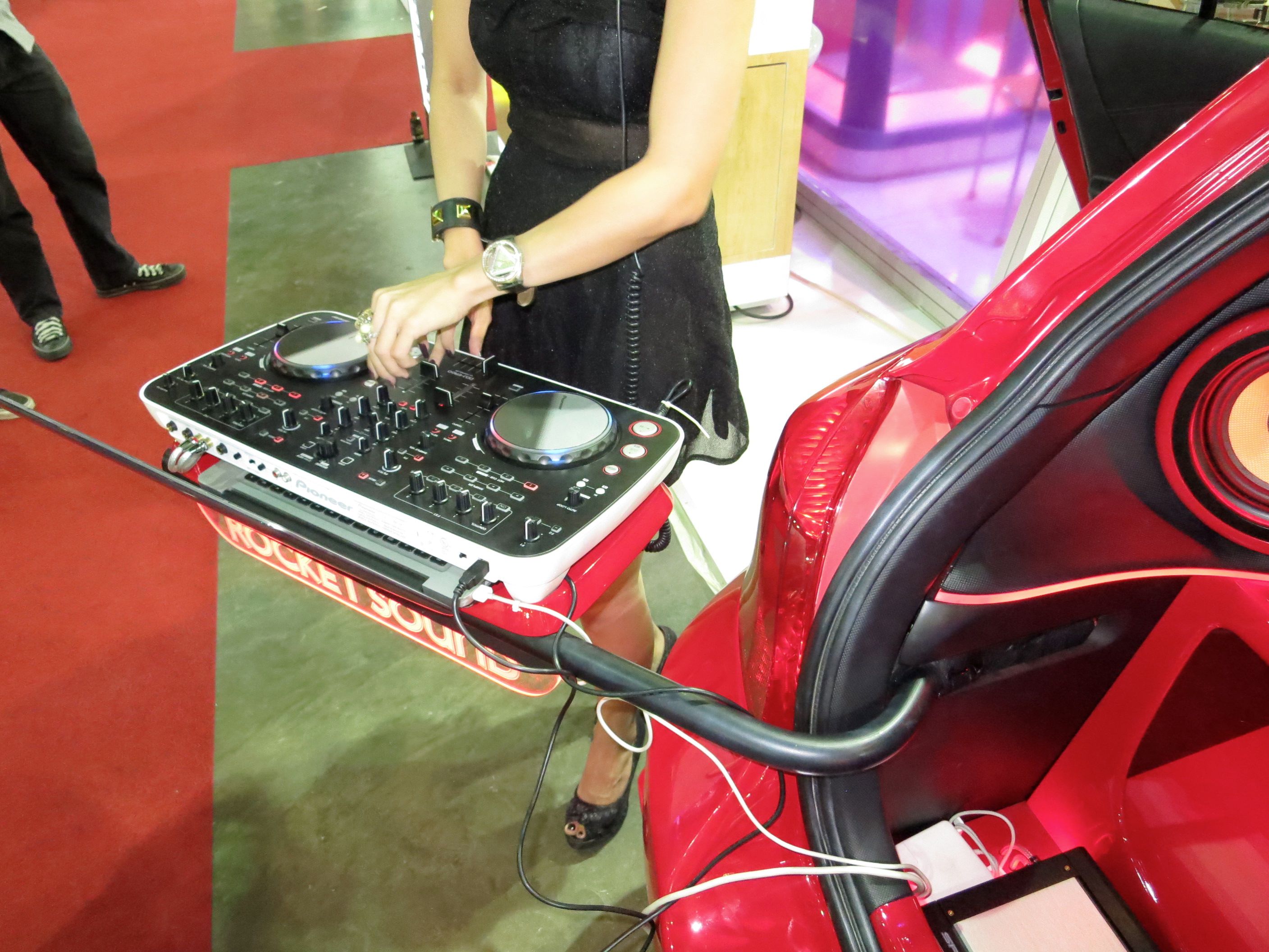 カーショーなどで,ターンテーブルとマックをこのDJスタンドに載せて,クルマやバイクのオーディオにつないで,DJする時に便利かな?と。