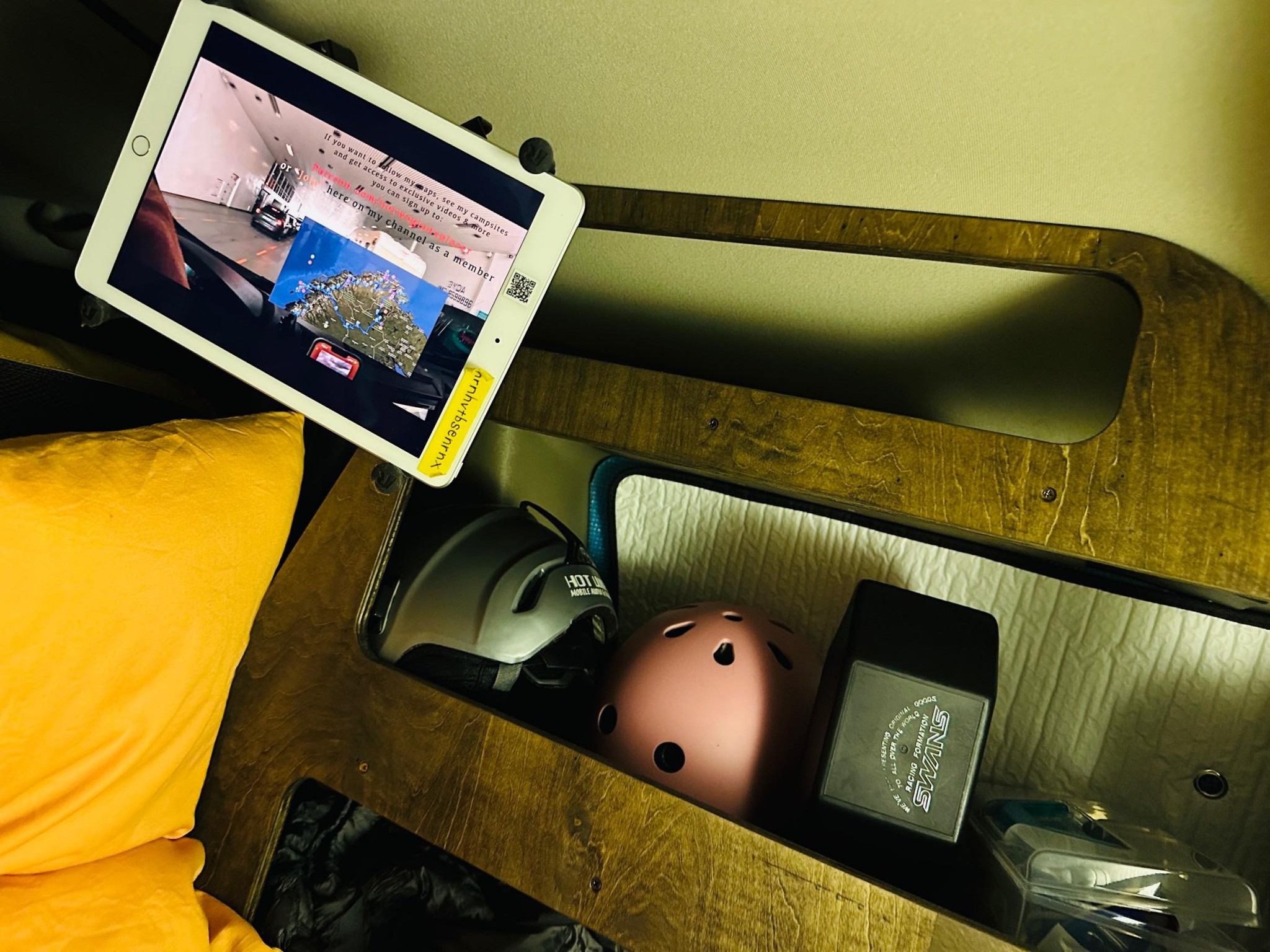 ポータブル電源を使用して、照明や電気毛布を駆動して、iPadでYoutube見ながらの優雅な車中泊が可能となりました。