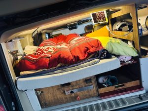 - HUMMER H2の車中泊仕様車製作 ステルスキャンパー GEN4 (家庭用の寝具で車内でも快適な睡眠環境を実現する!)