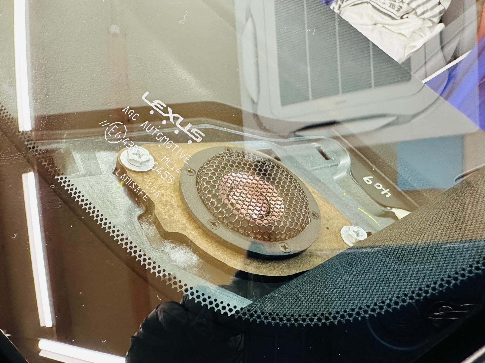 スケスケのパンチングメタル製のレクサス純正のスピーカーグリル。