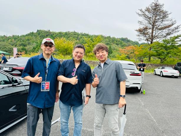 国際ジャッジの一人として、外国人ジャッジのお二人とホテルの駐車場で試聴&トレーニングです。