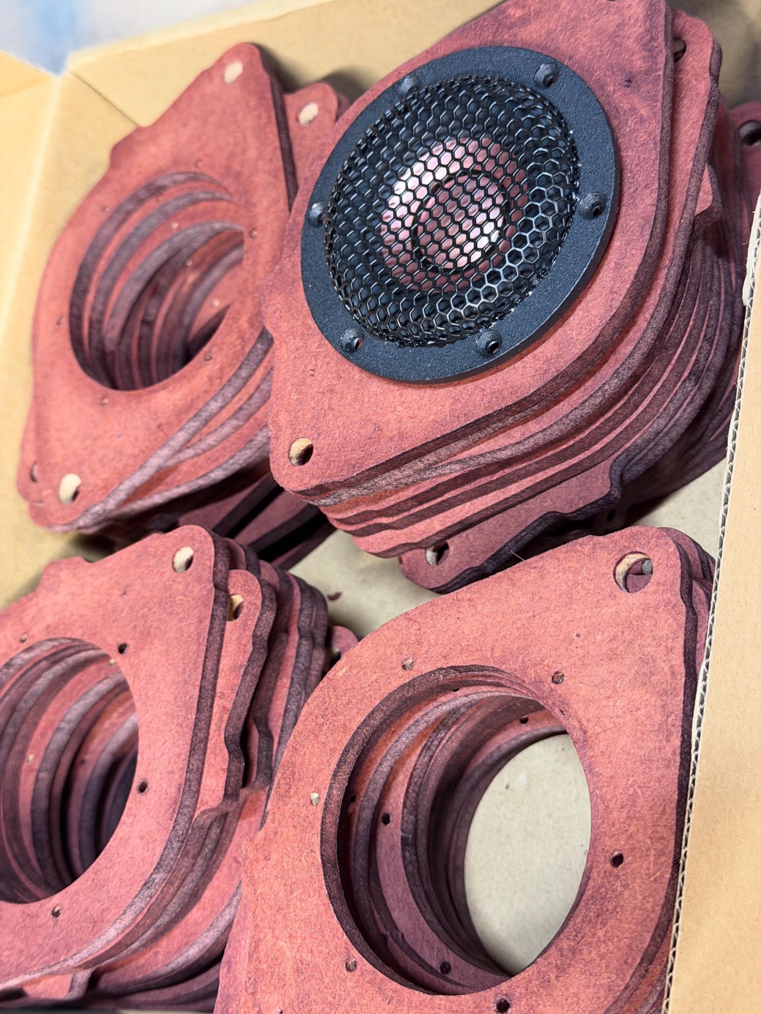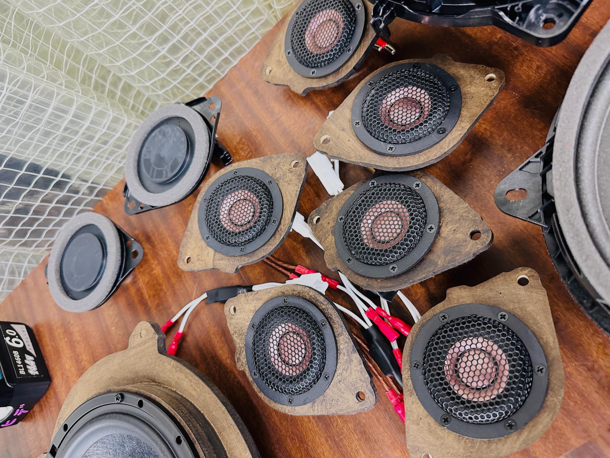 左から順番に、フロントドアのUnityスピーカー、リアドアのUnityスピーカー、フロントドアのミッドウーハー、サブウーハー です。