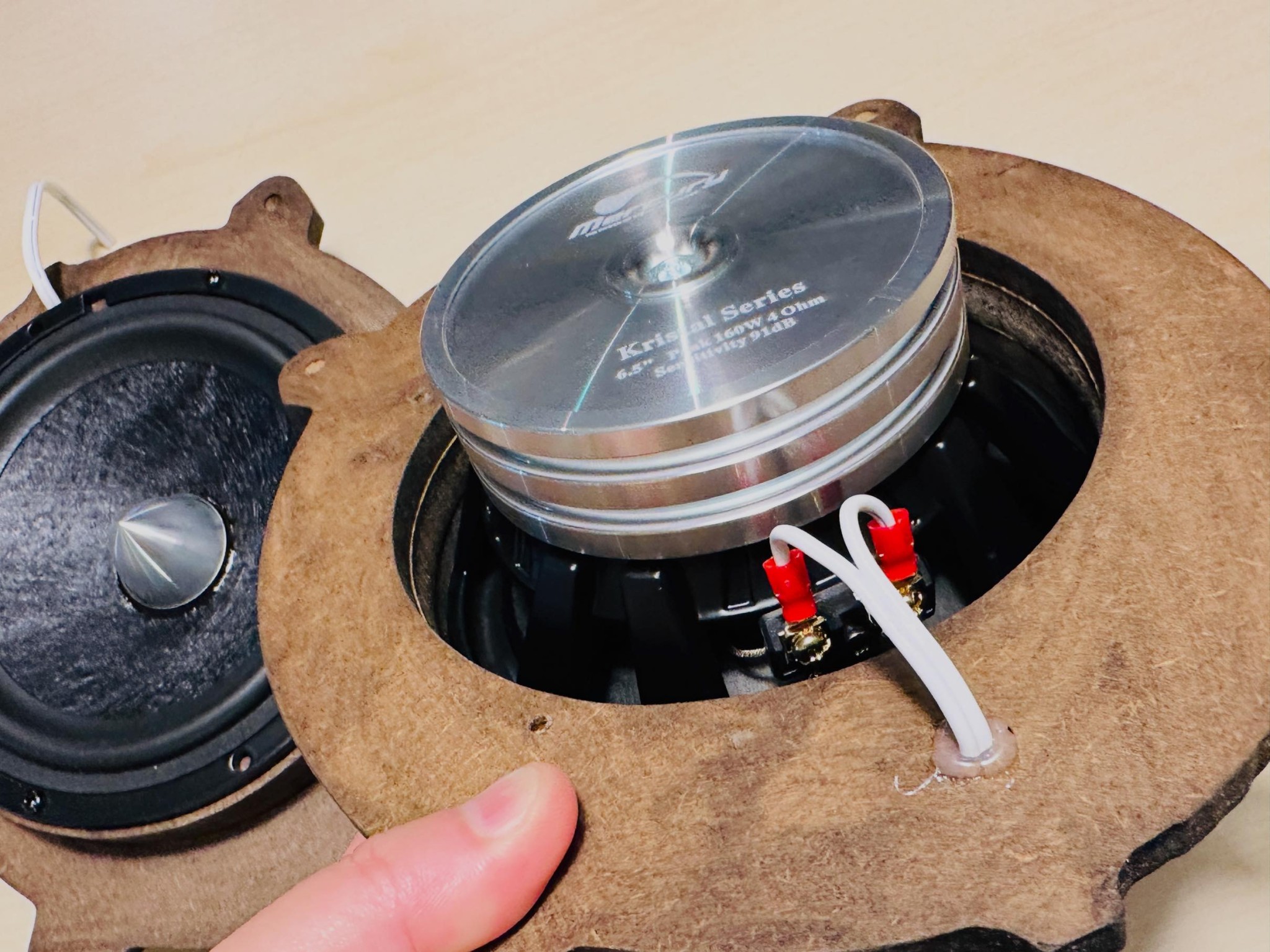 どのミッドウーハーをアップグレードしたことで、タイトでスピード感のある低音を鳴らす様になるだけでなく、驚くほどパワフルに鳴る様になりますので、ドアの共振がものすごいことになります。