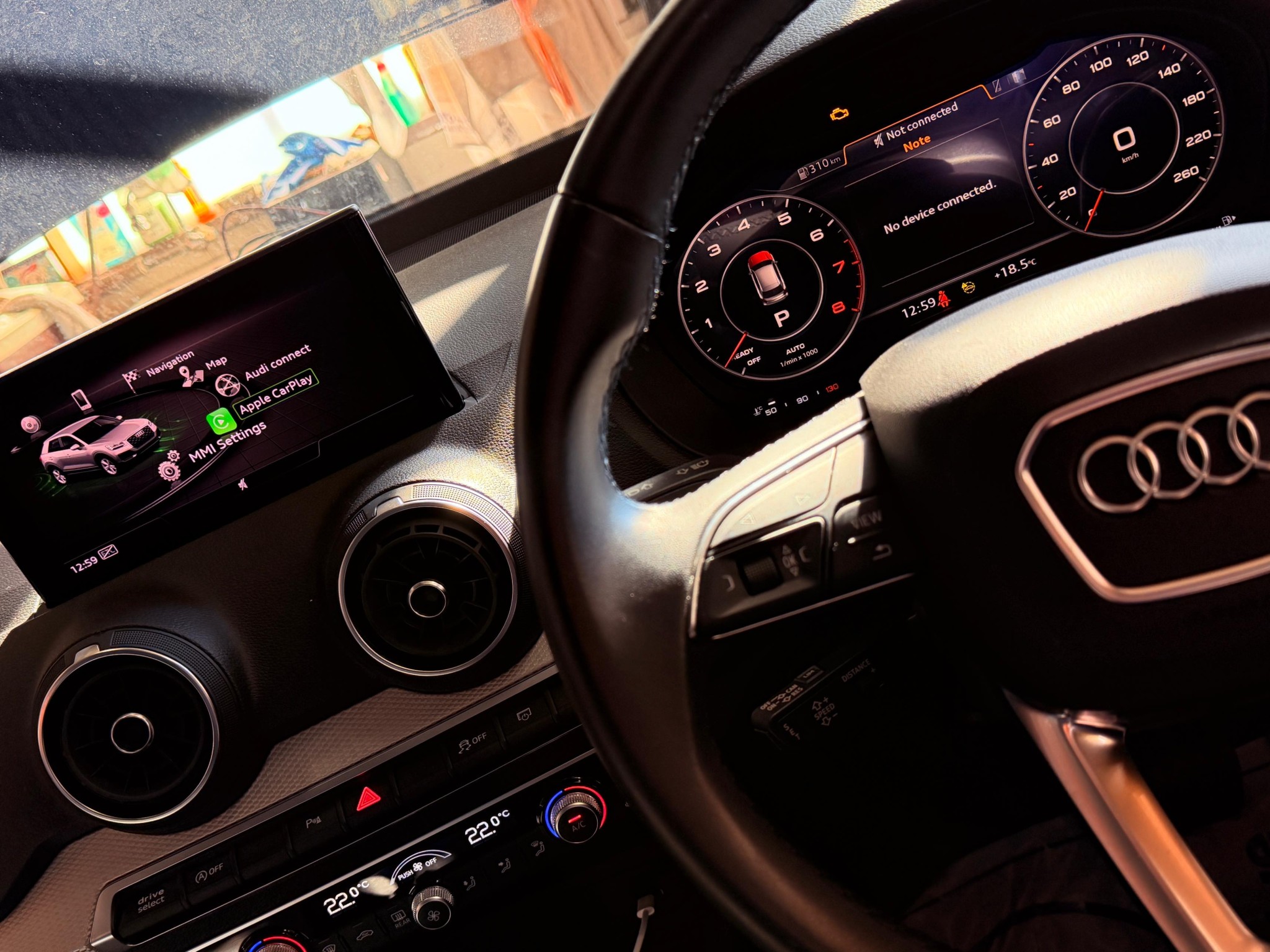 メーカーオプションの、アウディスマートフォンインターフェースがついていませんので、CarPlayもAndroid Autoも使えません。