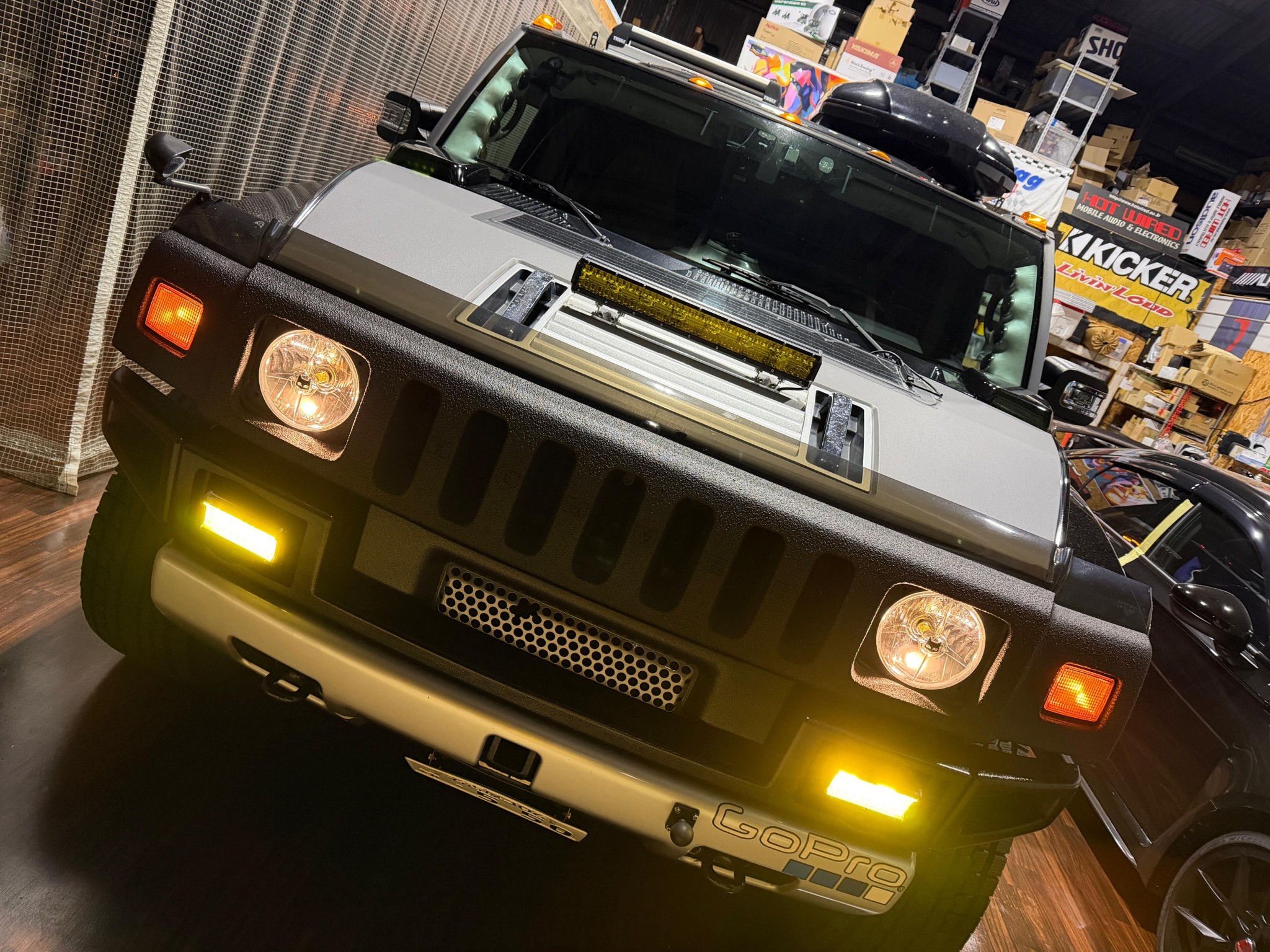 この年式のハマーH2は、ヘッドライトがイエローバルブでも車検もOK。