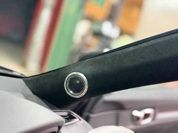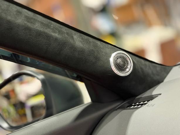②最適な位置と角度で、ツイーターをAピラーに埋め込み取り付け。