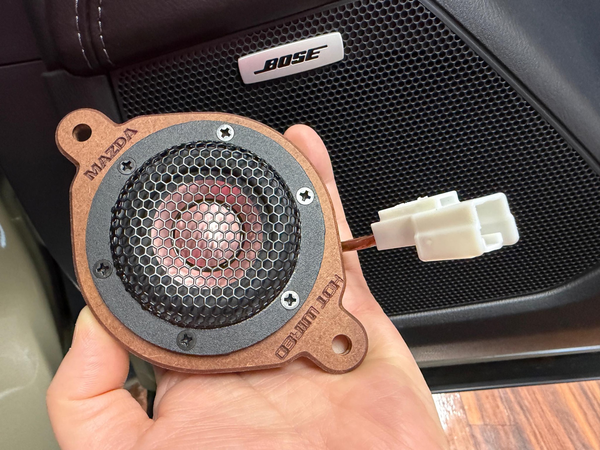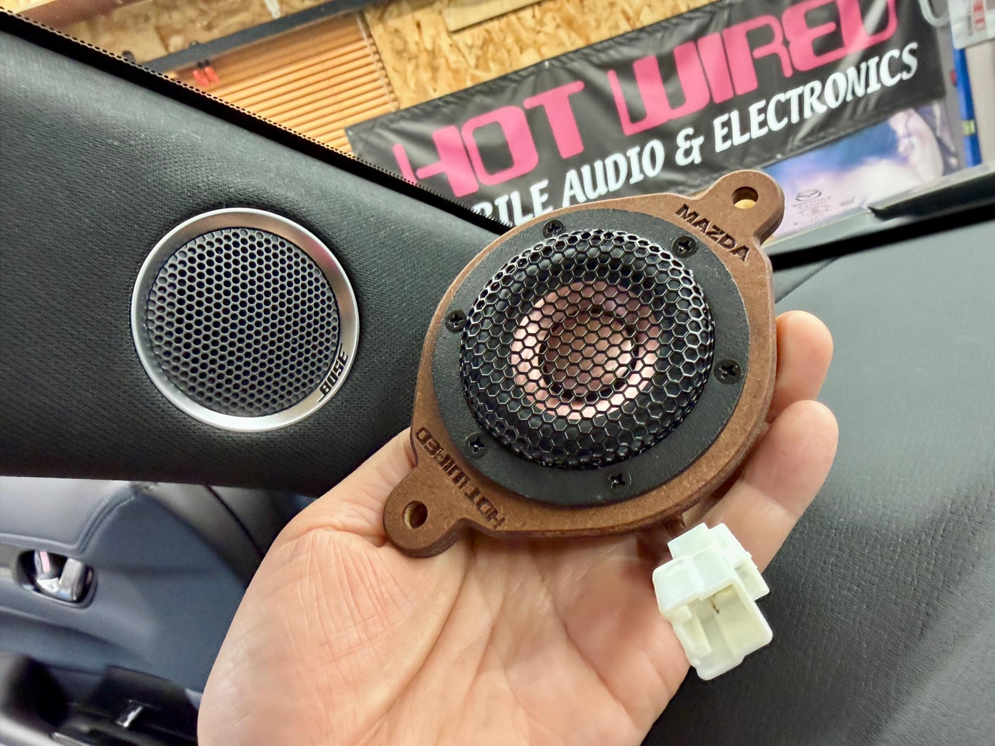 マツダ純正BOSEサウンドシステムの音質改善、スピーカー交換による音質向上の施工実績が豊富な、名古屋のカーオーディオ専門店「HOT WIRED」から、