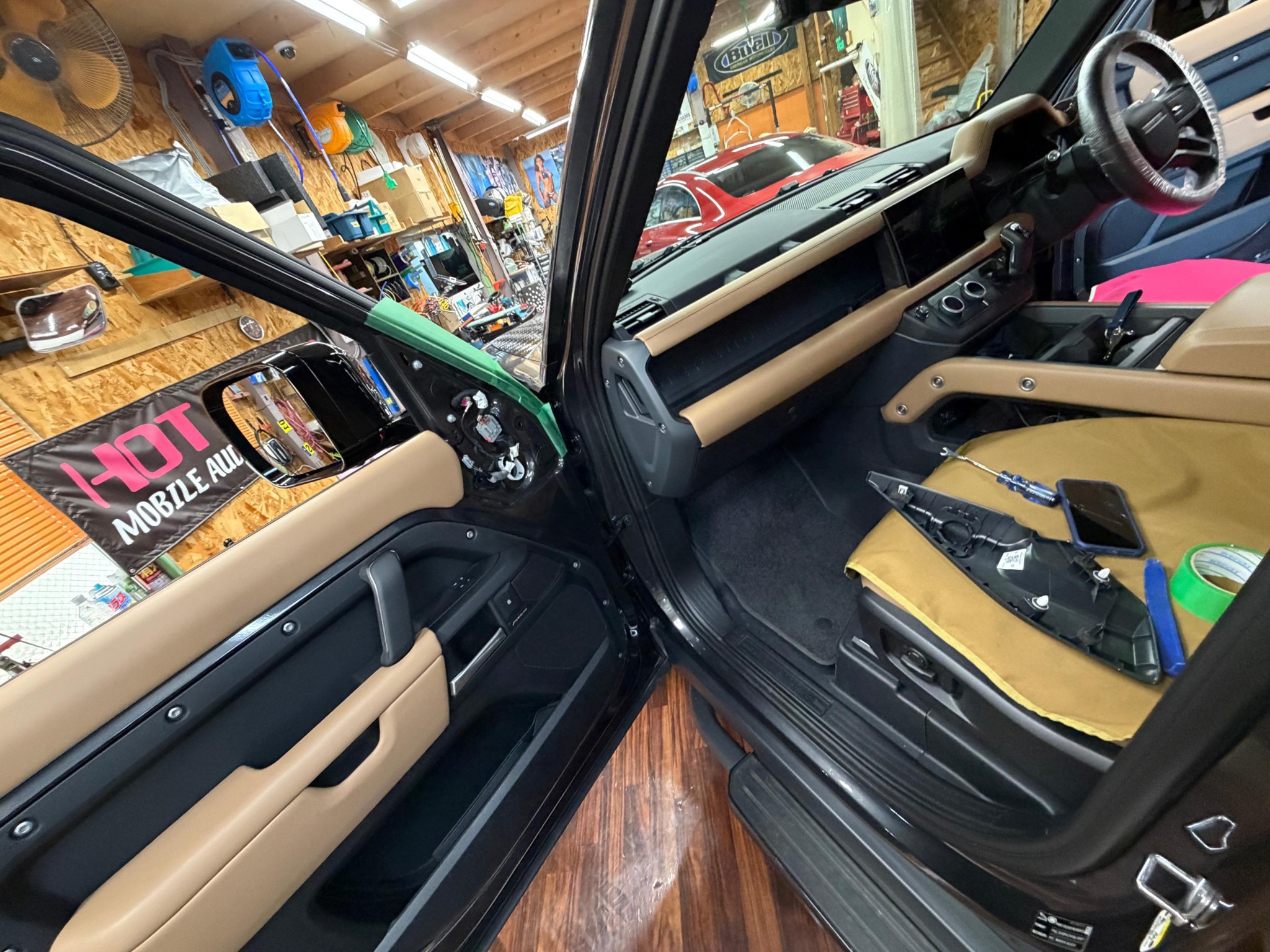 ランドローバー ディフェンダー 純正メリディアンのスピーカー交換、音質向上は、実績豊富な名古屋のカーオーディオ専門店「HOT WIRED」までご用命ください。