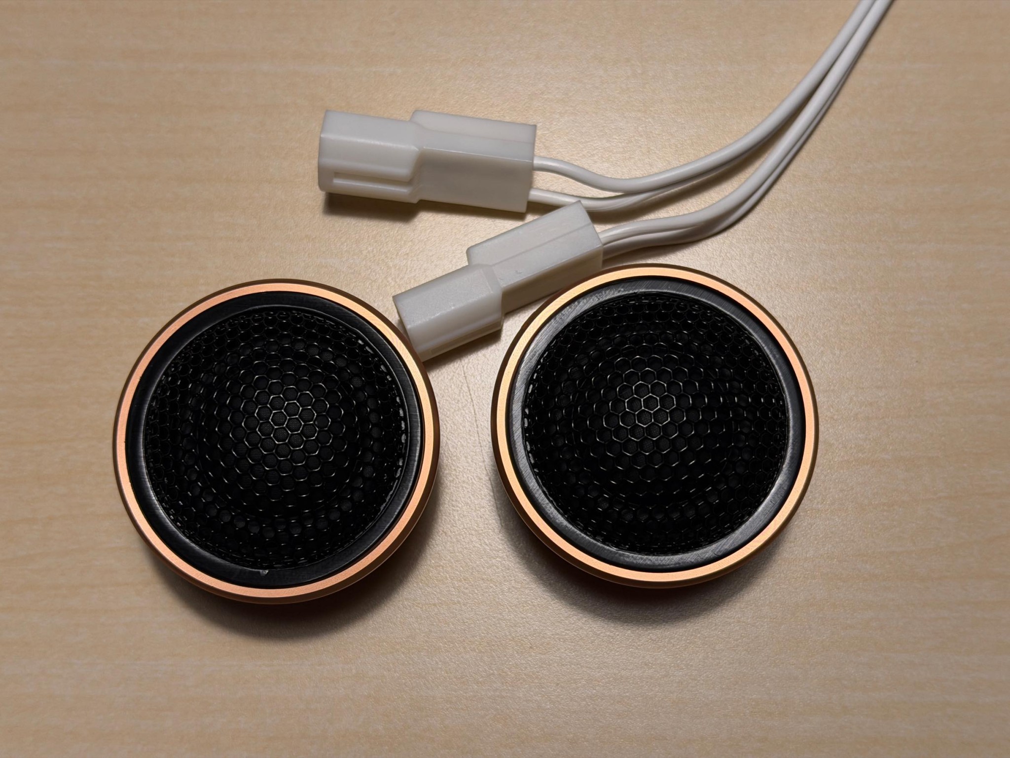 こちらは、ディフェンダー純正メリディアンのツイーターと、ツイーターアップグレードキットの比較画像です。