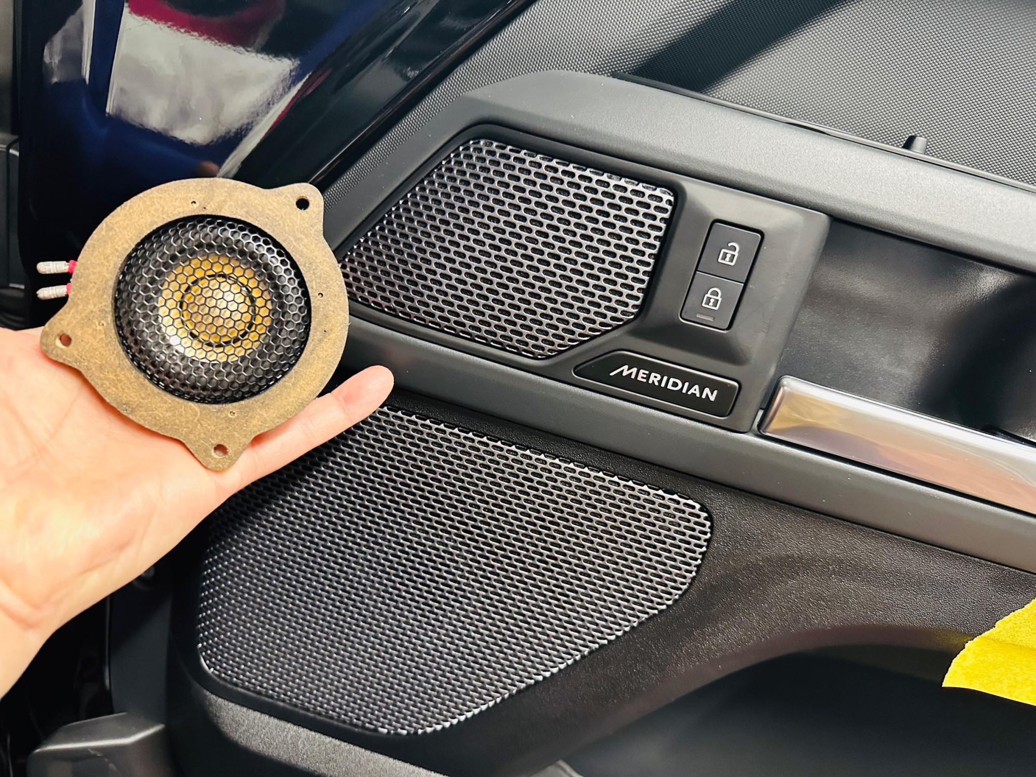 名古屋のカーオーディオ専門店「HOT WIRED」は、メーカー純正プレミアムカーオーディオのアップグレードを得意分野としており、車体への加工や改造が最小限での、ジャガー/ランドローバー純正メリディアンのスピーカー交換のみによる劇的な音質改善を数多く施工してきており、日本全国のカーオーディオ愛好家のランドローバーオーナー様に名古屋までご足労いただいております。