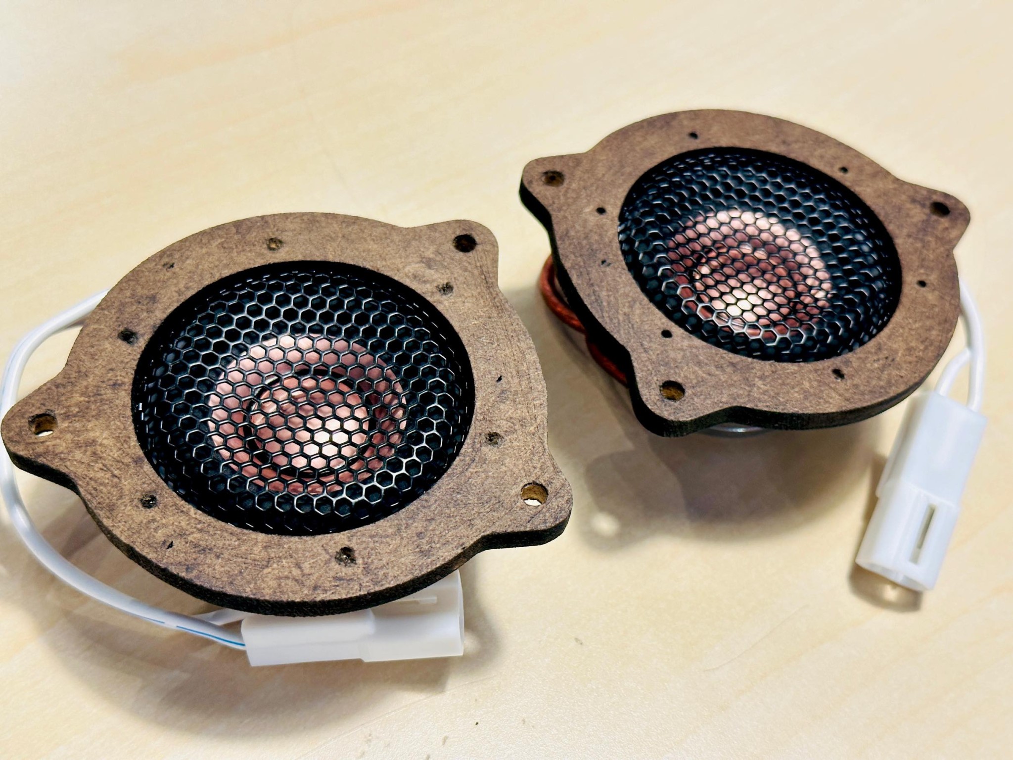 まずは、一番重要な周波数帯域の再生を担っている、ドアのスコーカー(ミッドレンジ)のアップグレードキットのご紹介です。