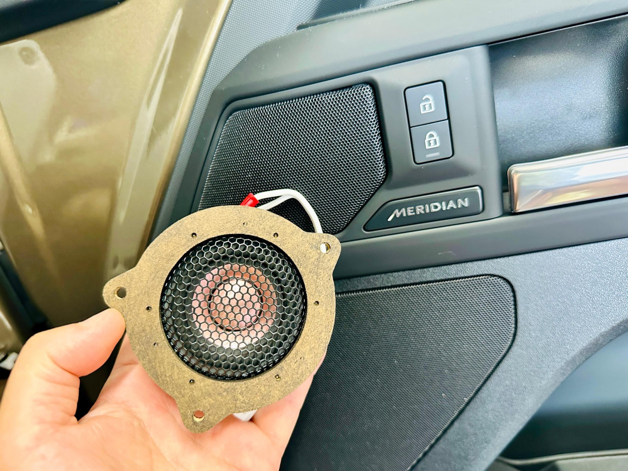 ランドローバー ディフェンダー 純正メリディアン専用 スピーカーアップグレードキットのご紹介:フロントドアの3wayスピーカーを交換する方法