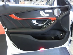 ドアのパーツをボディー同色にペイントしたり、カーボン調のスイッチパネルや、黒レザーにに赤いスティッチを入れたりしていますが、これらのドアの内装パネルは、別々のパーツになっていて、レザー仕上げ等のあと、それぞれのパーツをネジで固定してあります。両側で50本くらいネジがあります。