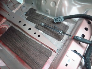 できるだけ制振効果の高い部位を選んで、より効果的にデッドニング材をはっていきます。